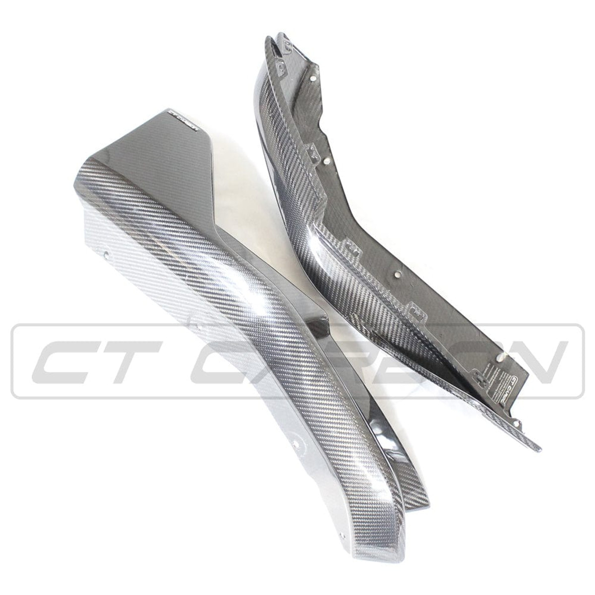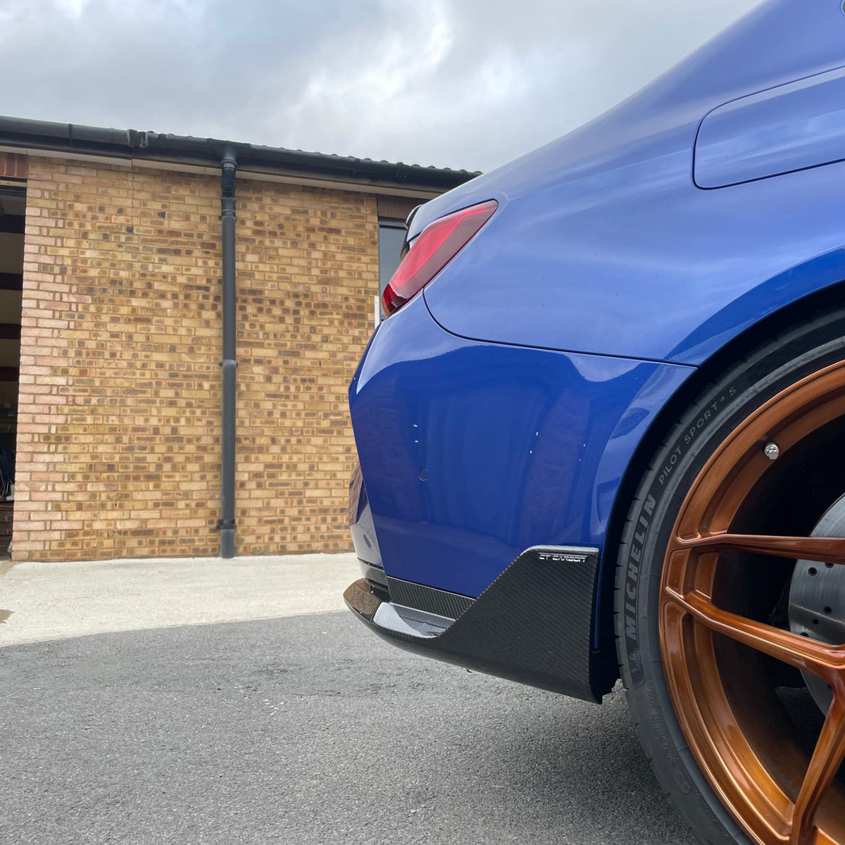 CT Carbon rear bumper corners for the new BMW M3 G80 and G81 Touring in MP style. These carbon fibre bumper corners are made from high-quality ultra lightweight pre-preg carbon fibre.