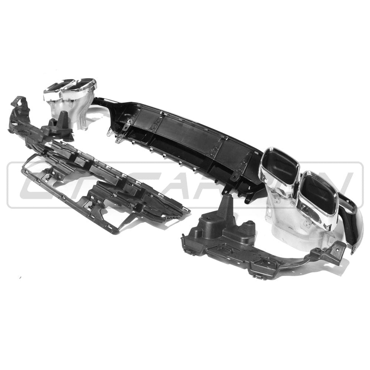CT Carbon diffuser made high-quality ABS plastic with chrome tips included & finished in a high gloss for the pre-facelift W205 C-Class & C43 Saloon/Estate.