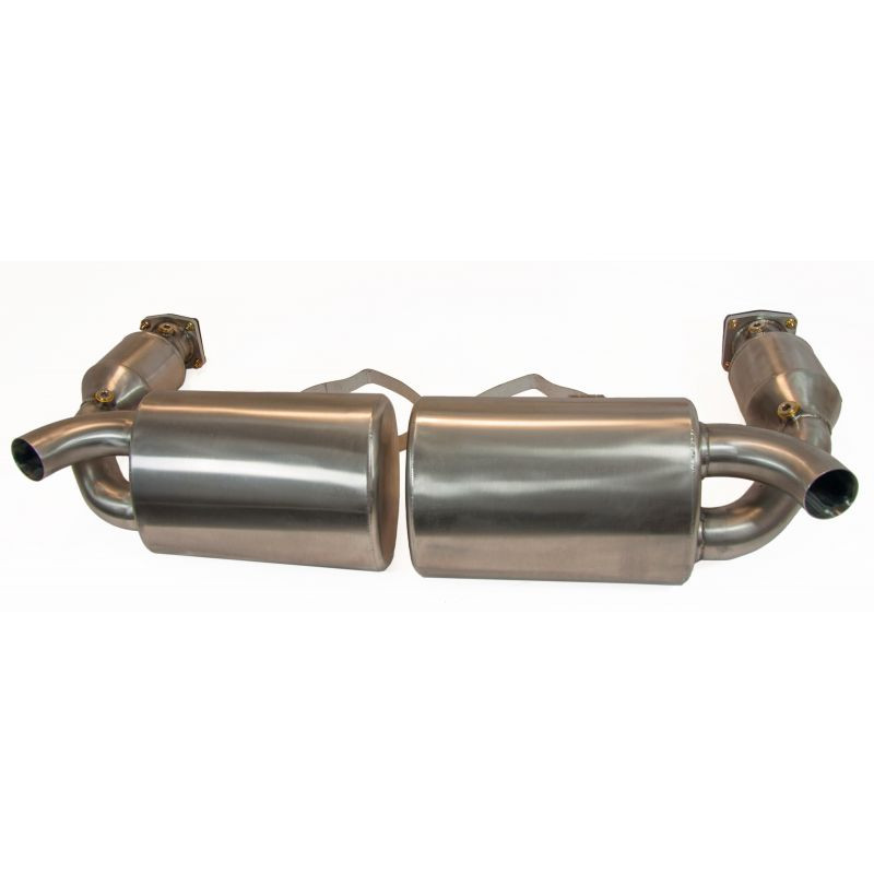 The item listed is a high quality exhaust system for the Porsche 911 997 Turbo. It is a Manifold Back system that includes 200 Cell Sports Cats and does not include tailpipes or manifolds. It is an aftermarket, performance exhaust with a louder note and boasts significant power gains over OE due to a free-flowing, mandrel bent, TIG welded system. The exhaust's finish is a Euro style brushed finish and the cats are about as powerful as we could get onto the Porsche 911 turbo while still passing the MOT! Please note, this exhaust will not fit Generation 2 997.