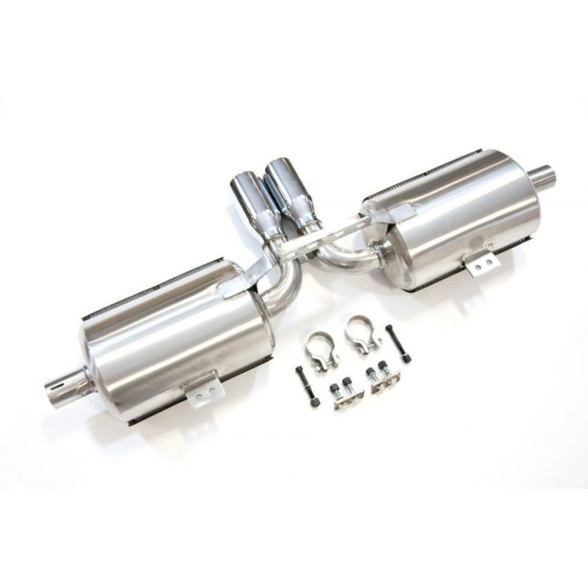This is a rear section (cat-back) exhaust for the Porsche 986 Boxster, which also comes with 76MM, chrome finish tailpipes. The exhaust also features a hand-fitted heat shield and is specifically designed to provide power gains and a smooth sports note. Professionally mandrel bent and TIG welded, this stainless steel exhaust system is a perfect upper-market, performance fit for the Porsche 986 Boxster. It includes all gaskets and bolts required to fit the exhaust system, unlike systems manufactured by our competitors. This system is at the higher end of the 986 price range but is a strong contender for best cat back exhaust available for 986 Boxster.