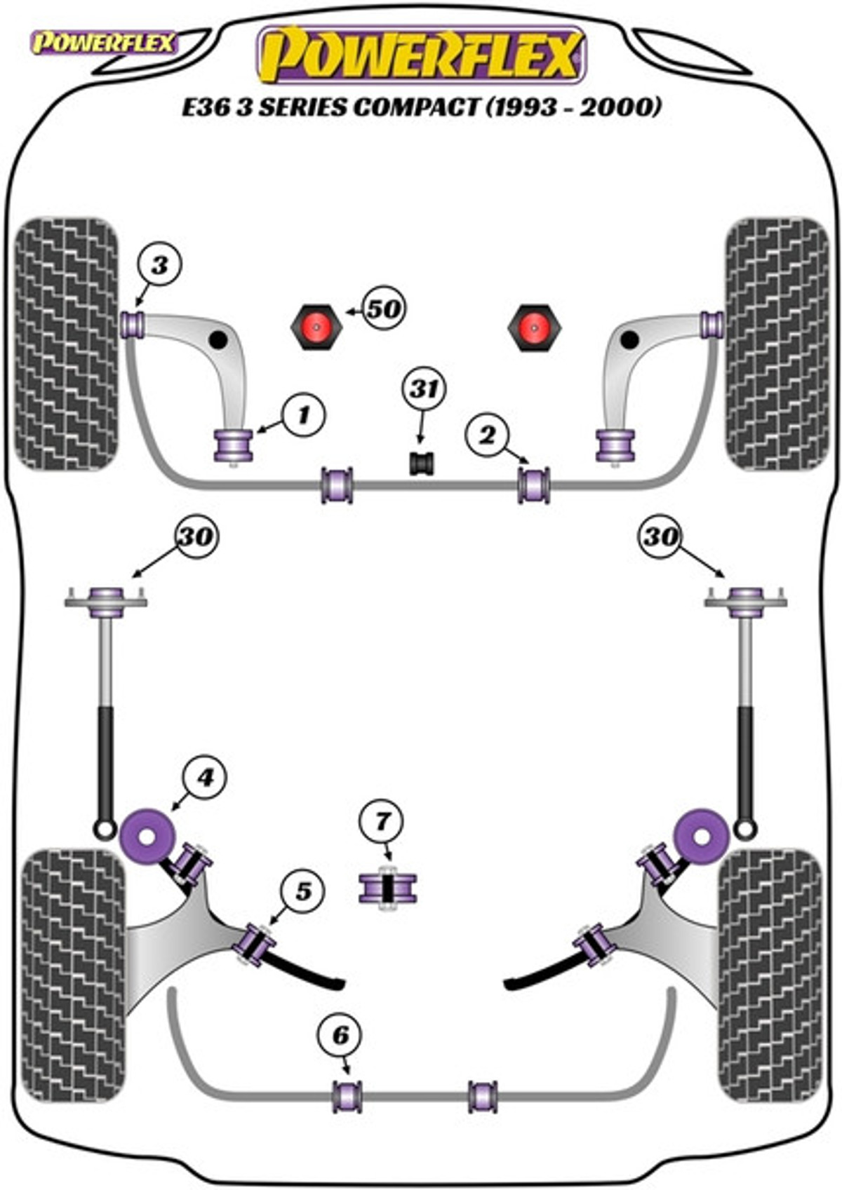 POWERFLEX Road Series bushes improve your carsÂ’ road holding and chassis performance by controlling the amount of unwanted flex in the suspension. They offer Prolonged tyre life, Improved performance, Increased safety, Greater cost-effectiveness.