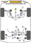 PRODUCT NOTES: PFF85-831P replaces the lower half of the original bush whilst including an insert to fit into and fill the voids in the upper bush to minimise wheel hop and improve gear-shifting. This unique bush has been designed to be fitted without subframe removal and avoids associated wheel alignment costs. This part is made in our Purple Shore A 80 for vehicles running increased power or that see occasional track use.