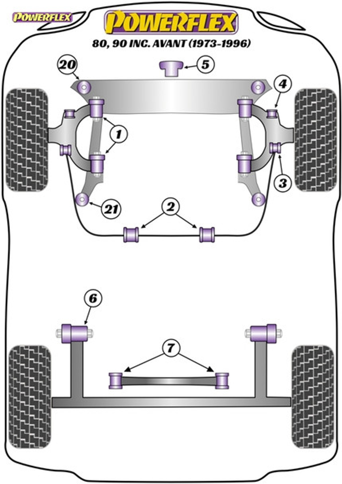This bush fits Audi 80,90 inc Avant, Coupe, it fits up to 1994 chassis number 8B-L-003-791, after 1991 the anti roll bar may be linked to the shock absorber with a metal link so there will be no anti roll bar link. It fits Audi 80,90 Quattro and Coupe Quattro models up to 1992 Chassis Number 8A-N-200-000. Its fits Audi Cabriolet 1992-2000.