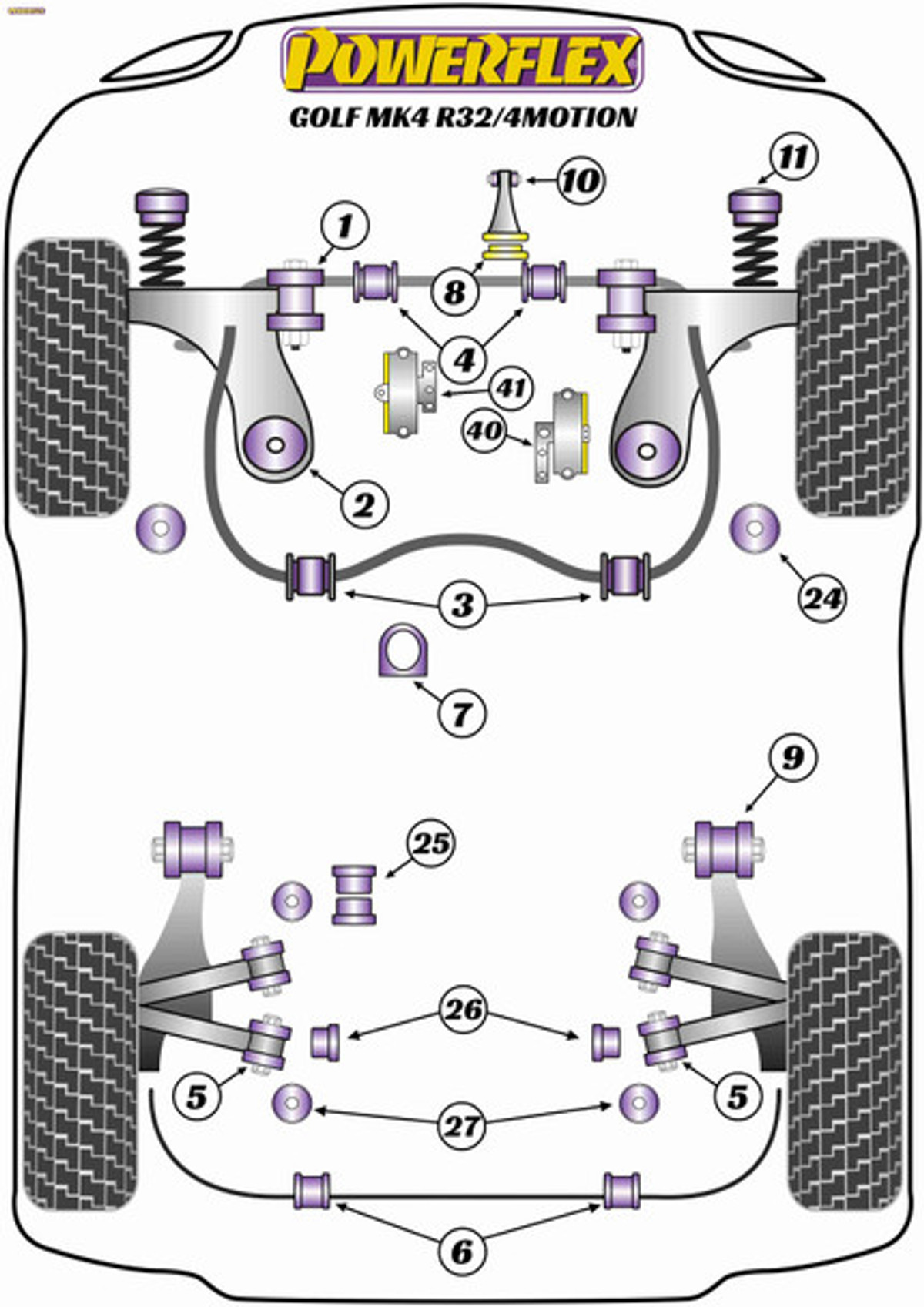 Powerflex Front Strut Top Mount Bushes - Volkswagen Golf Mk4 R32/4Motion