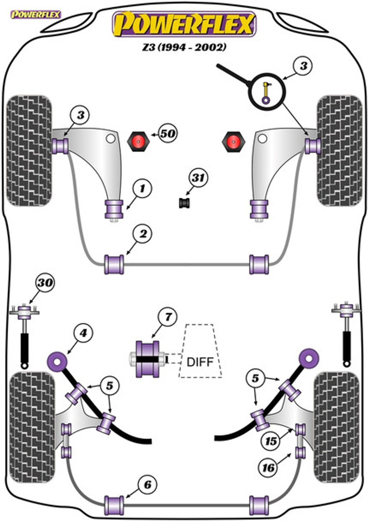 Powerflex Track Front Wishbone Rear Bushes, Aluminium Outer Caster Offset - BMW Z3 (1994 - 2002)
