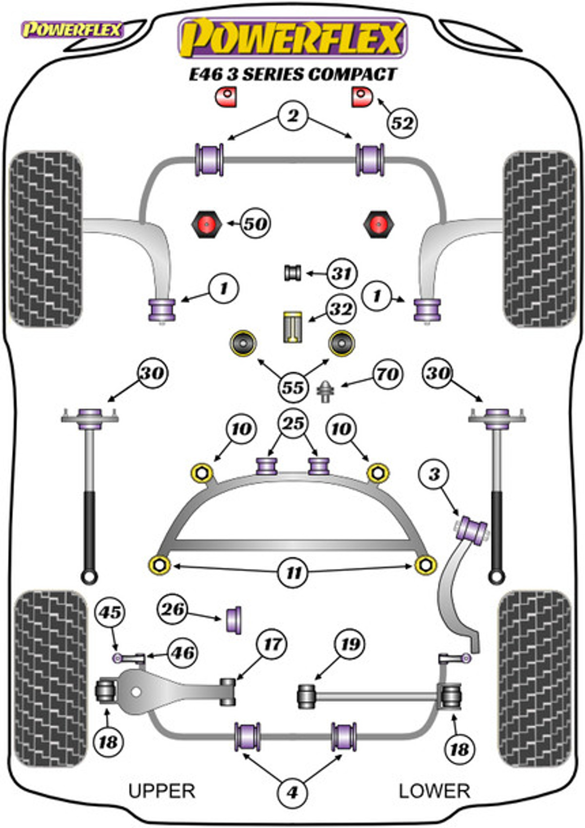 Powerflex Heritage Offset Lower Radiator Mount Kit - BMW E46 3 Series Compact