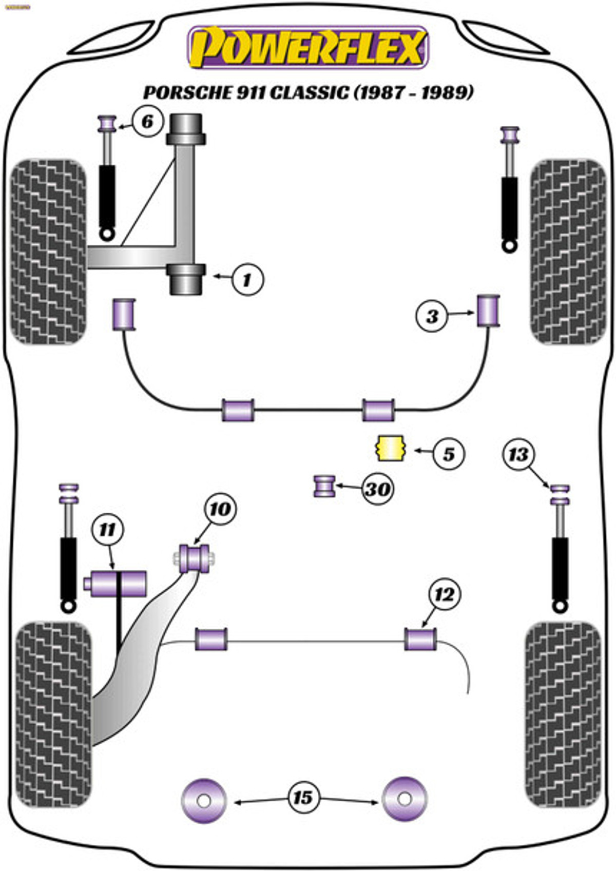 Powerflex Heritage Rear Shock Upper Mounting Bushes - Porsche 911 Classic (1987 - 1989)