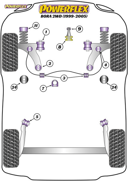 POWERFLEX Road Series bushes improve your cars road holding and chassis performance by controlling the amount of unwanted flex in the suspension. They offer Prolonged tyre life, Improved performance, Increased safety, Greater cost-effectiveness.