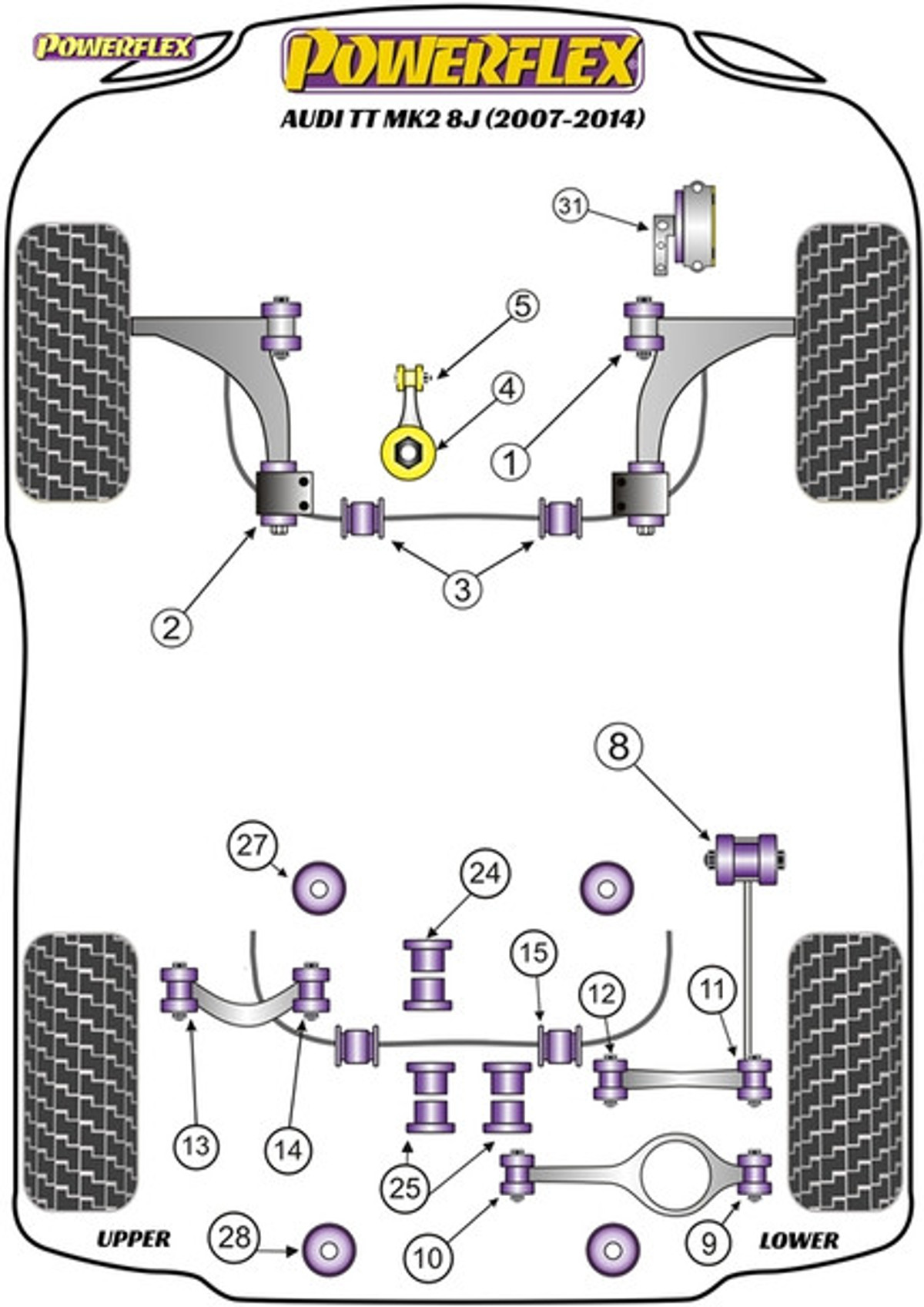 POWERFLEX Road Series bushes improve your carsÂ’ road holding and chassis performance by controlling the amount of unwanted flex in the suspension. They offer Prolonged tyre life, Improved performance, Increased safety, Greater cost-effectiveness.