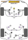 PRODUCT NOTES: PFF3-1326 Lower Torque Mount Bush is made from our stiffest Black 95A material to provide a durable replacement for the factory rubber bush to give road or tuned vehicles a sharper throttle response and more positive gear-change without compromising ride quality and NVH. An increase in stiffness by 50% over the worn OE rubber bush helps to reduce excessive engine movement caused by the torque reaction of the engine during acceleration and deceleration, one of the biggest causes of wheel-hop on tuned FWD or front-engined vehicles. Please check which type of bracket is fitted to the vehicle before ordering.