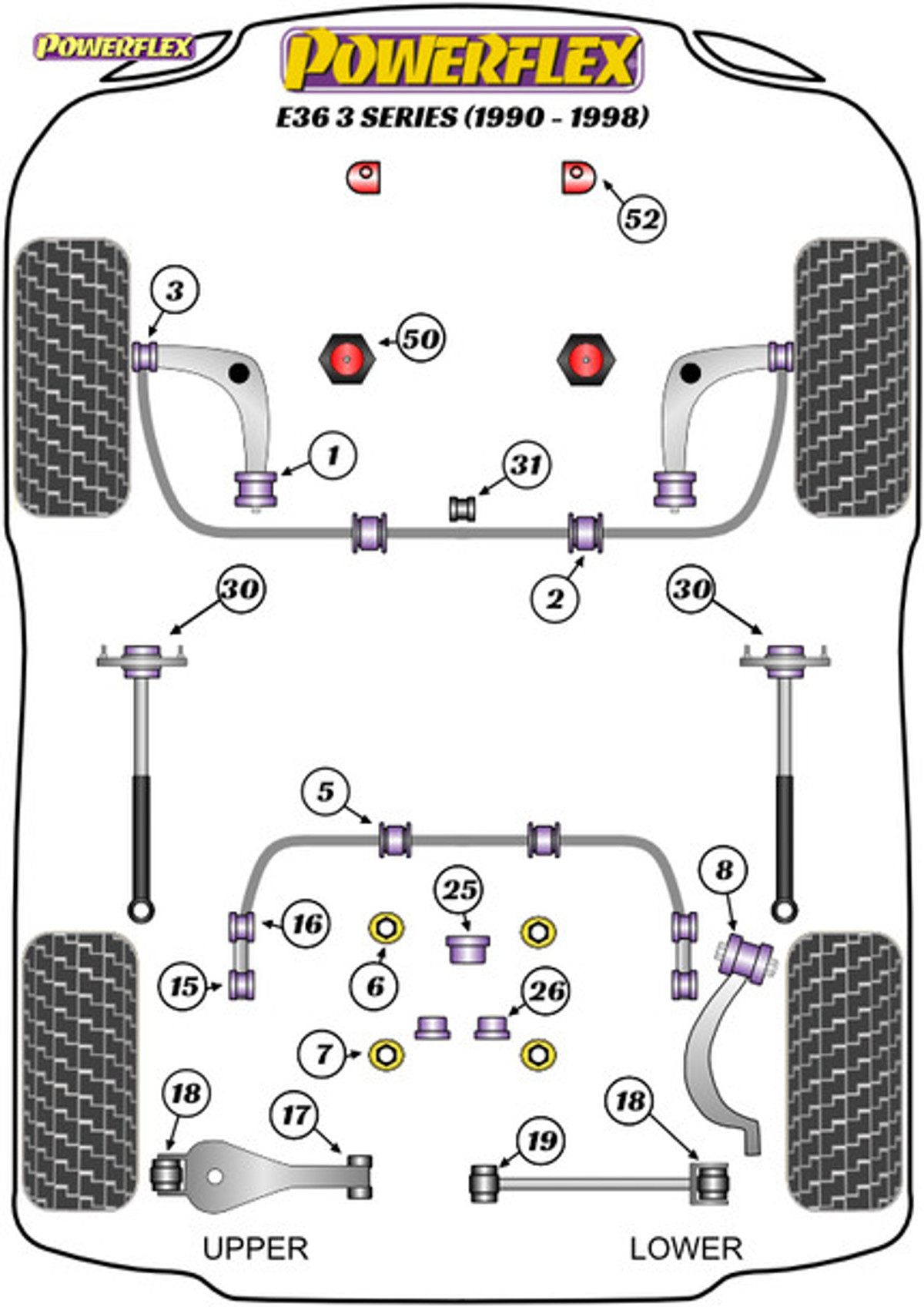 POWERFLEX Road Series bushes improve your cars road holding and chassis performance by controlling the amount of unwanted flex in the suspension. They offer Prolonged tyre life, Improved performance, Increased safety, Greater cost-effectiveness.