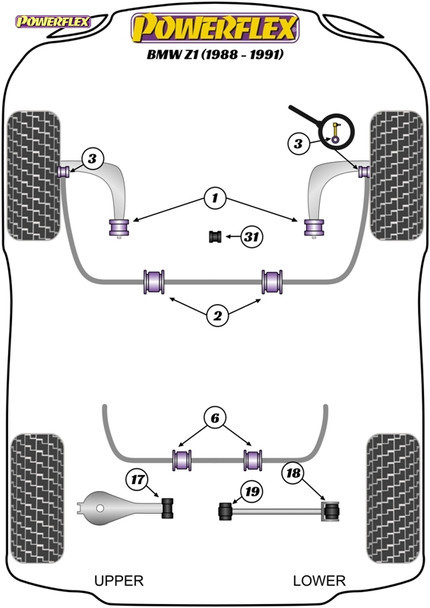 Powerflex Rear Roll Bar Mounting Bushes 14mm - BMW Z1 (1988 - 1991)