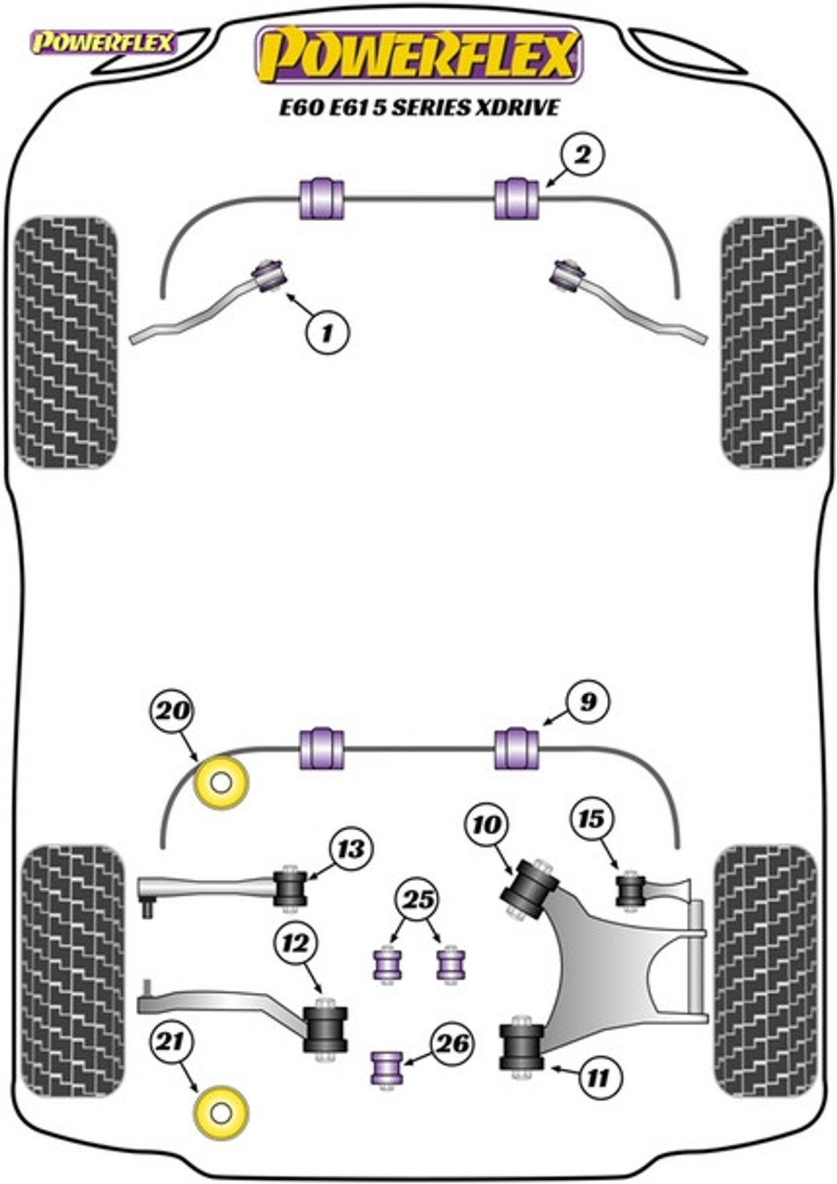 Powerflex Rear Subframe Rear Mounting Bushes - BMW E60, E61 5 Series Xdrive