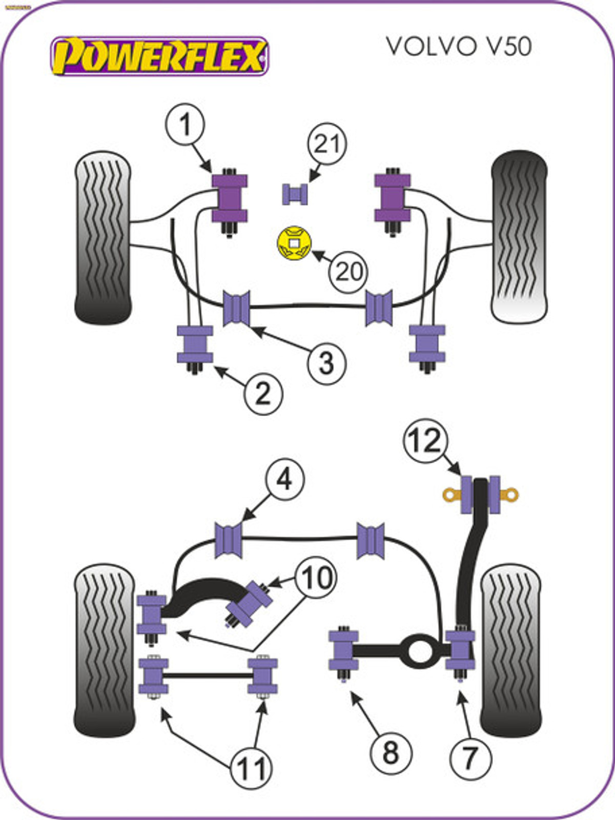 Powerflex Rear Track Control Arm Outer Bushes - Volvo V50 (2004 onwards)