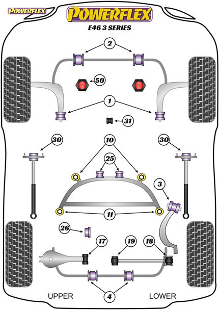 POWERFLEX Road Series bushes improve your cars road holding and chassis performance by controlling the amount of unwanted flex in the suspension. They offer Prolonged tyre life, Improved performance, Increased safety, Greater cost-effectiveness.