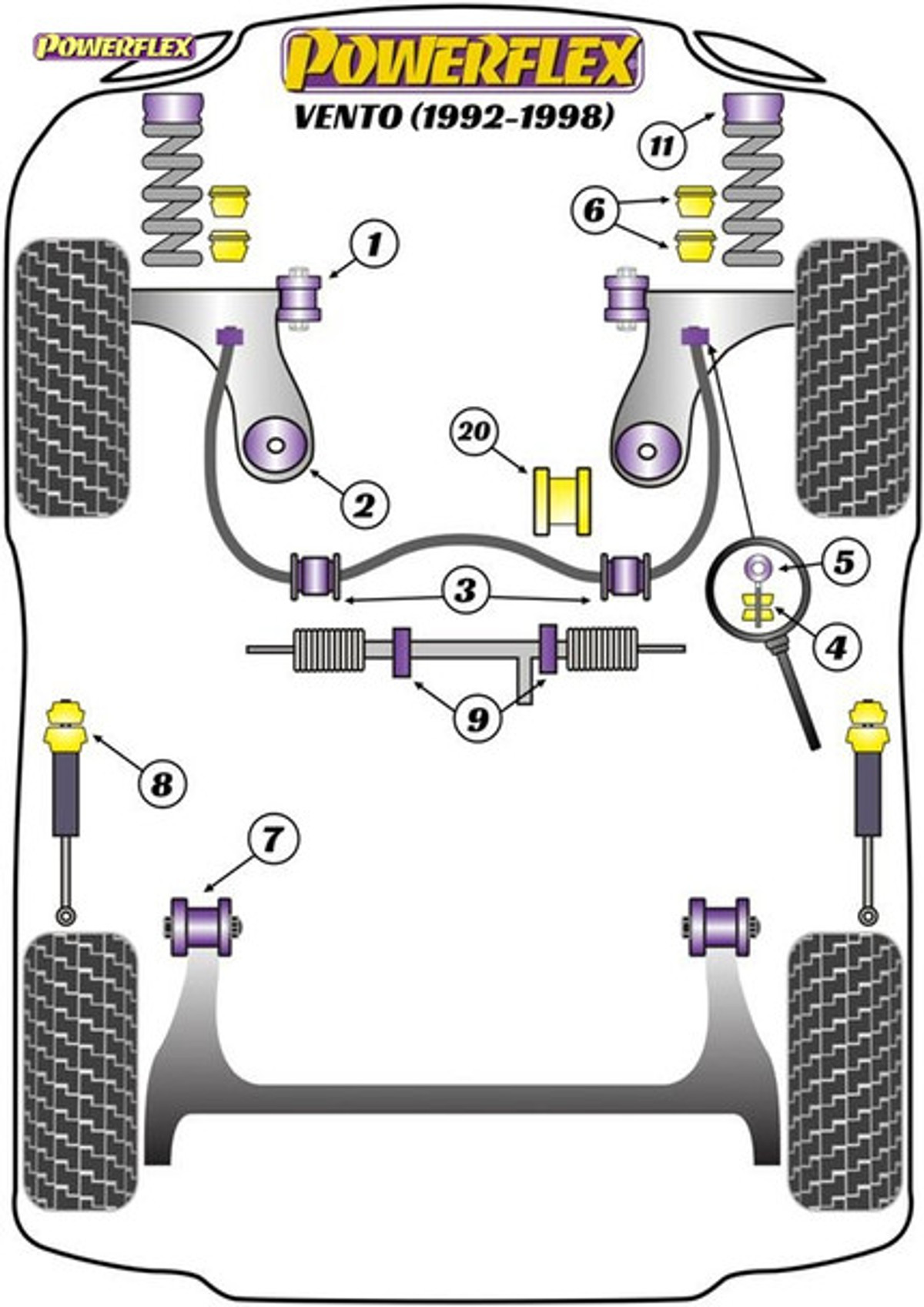 Powerflex Track Front Eye Bolt Mounting Bushes 10mm - Volkswagen Vento (1992 - 1998)
