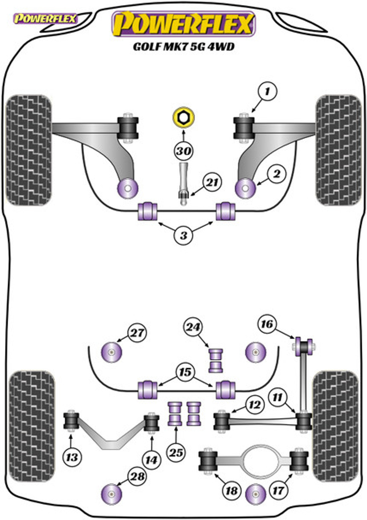 Powerflex Track Lower Torque Mount Small Bush - Volkswagen Golf MK7 5G 4WD inc R -