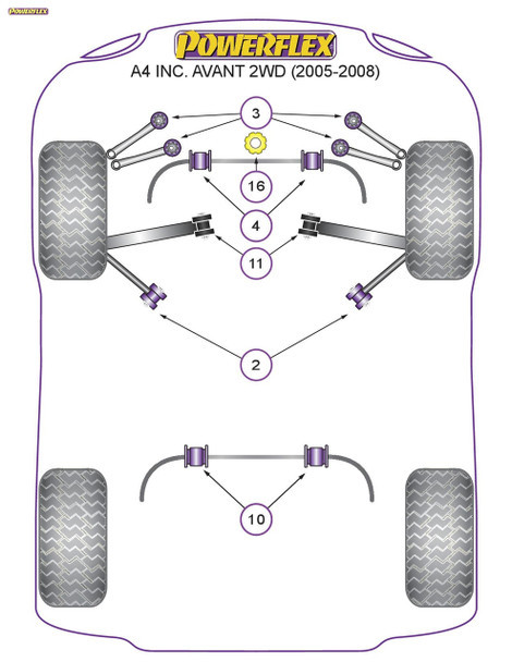 Powerflex Track Rear Anti Roll Bar Bushes 18mm - Audi A4 inc. Avant (2WD)