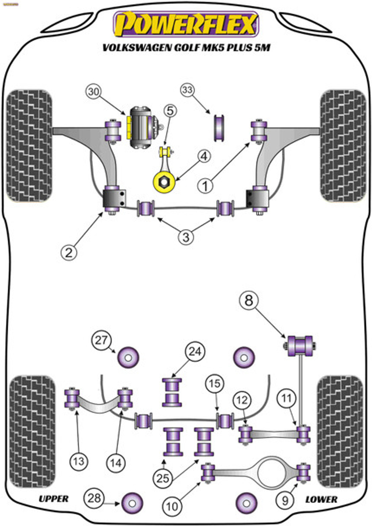 PRODUCT NOTES: This bush fits 4 wheel drive models only where the diff casing measures 30mm in width. The 30mm Differential casing mount is found on AWD 2004-2015 PQ35 platform vehicles. The OEM rubber mount must be part number 1K0 599 431 for this bush to replace. If in doubt, measure the height of the front casing mount before ordering. If the mount is 35mm in height and the OEM part number on your vehicle is 1K0 599 437 then use PFR85-524.