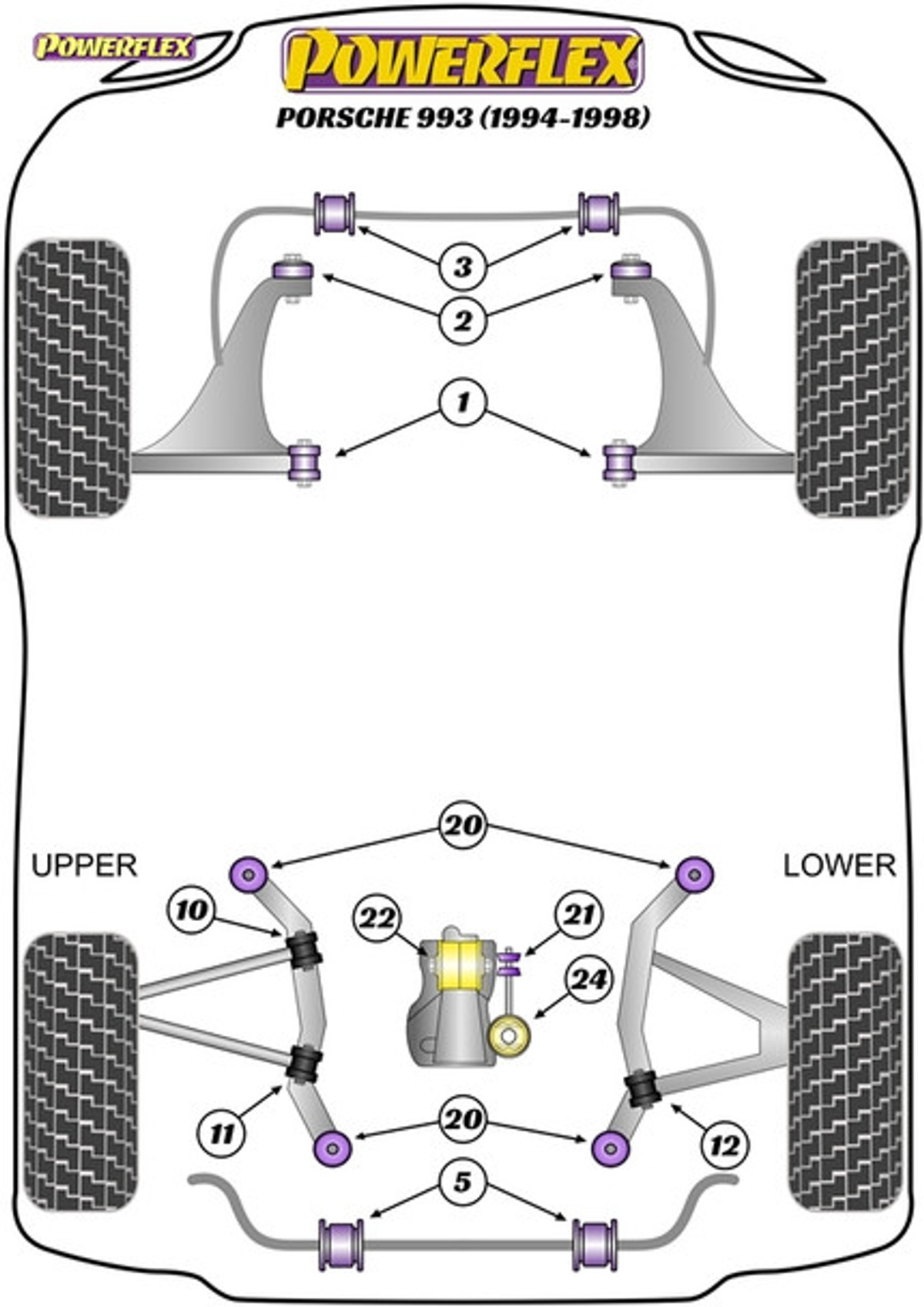 Powerflex Track Rear Subframe Bushes - Porsche 993 (1994 - 1998)