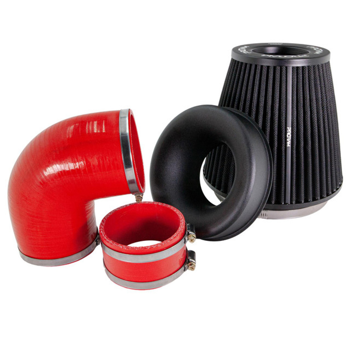 This induction kit will increase the airflow into the turbo while increasing engine noise over the restrictive factory air intake system. This kit includes everything required for the fitting of the induction kit.