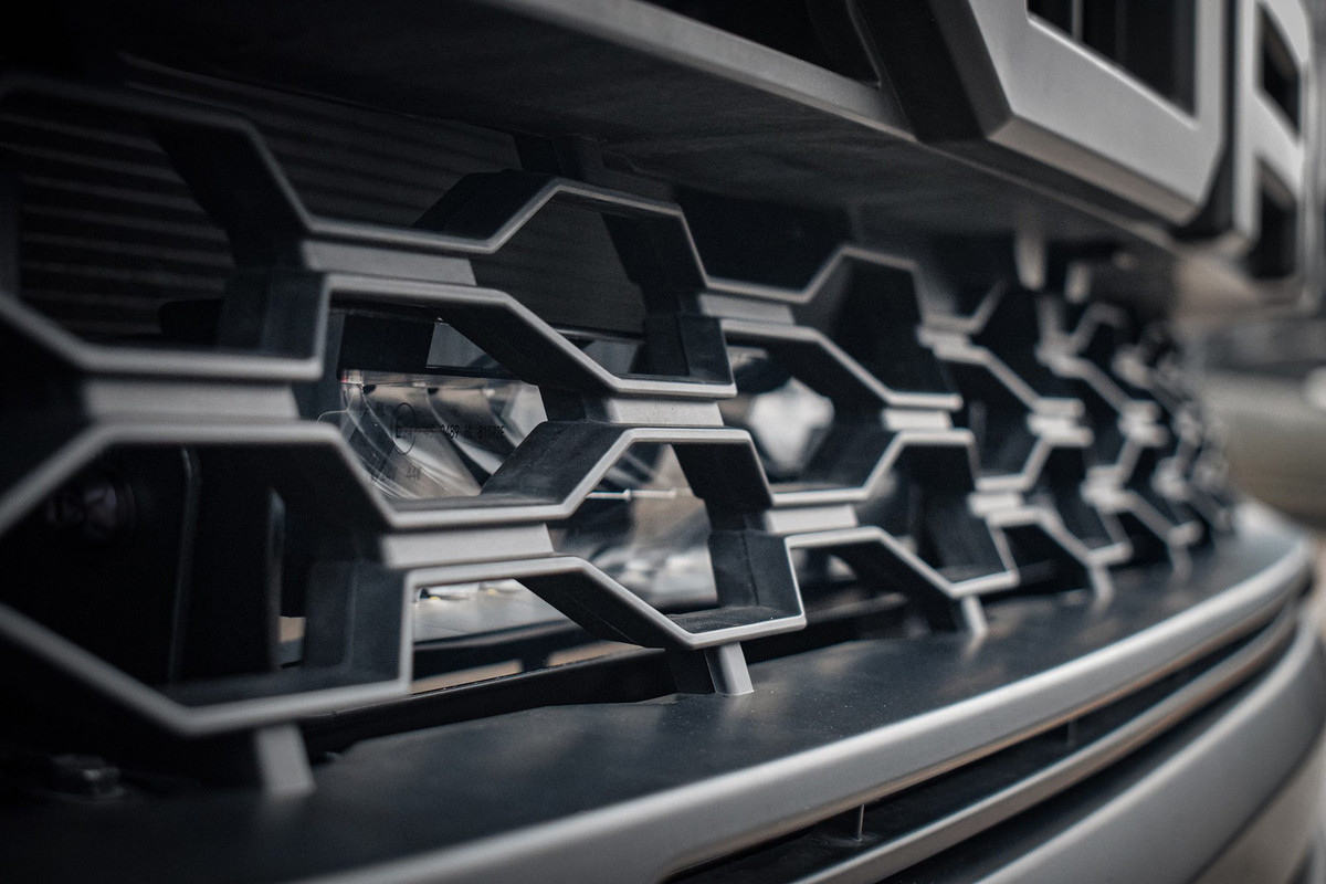 Designed using sophisticated CAD and 3D scanning software and fabricated in-house, our twin 13″ LED light Kit is ingeniously engineered to mount to existing points on the vehicle using bespoke mounting brackets, sitting discreetly behind the grille and includes a step by step installation guide. Our Twin 13″ Luminous Integration Kit for the Ford Ranger T9 offers a perfect blend of functionality and aesthetic appeal, perfect for both commercial and personal use. Improving visibility and safety for work sites and night time driving.
